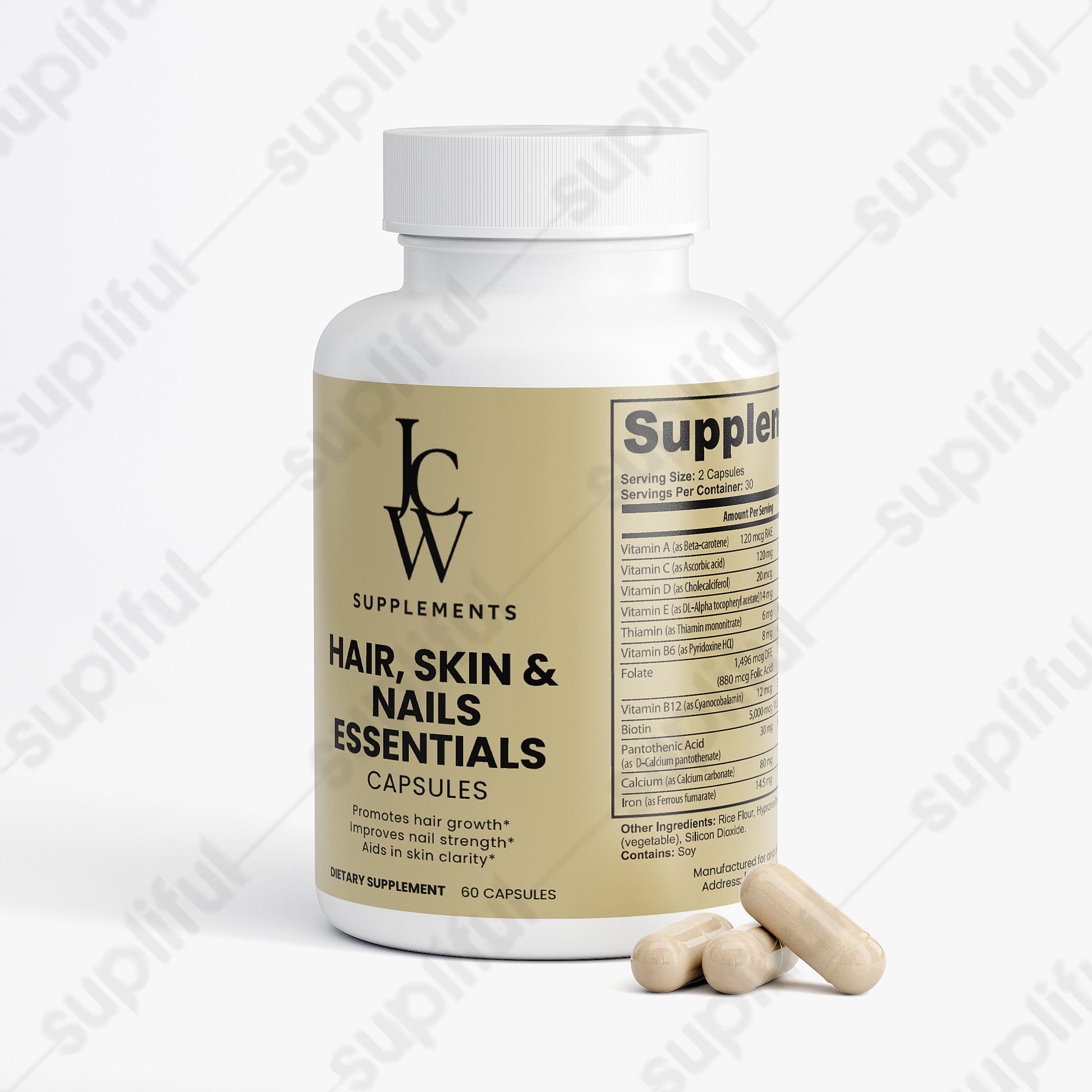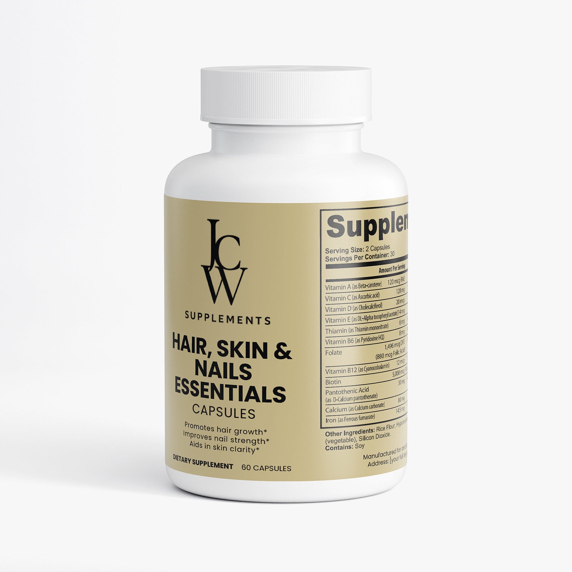 Our Hair, Skin, and Nails Essentials supplement is made to give you that natural glow. In combination, Vitamin B6, Folate, and Biotin work together to maintain elastin in the hair, skin, and nails. Elastin is a major component of body tissues, helping them function correctly.*